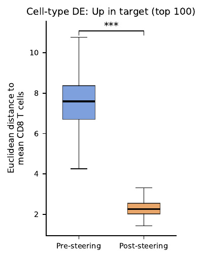 • Expression objective (this post): minimise distance from the steered output expression to the mean CD8 output expression, weighted by log fold- change of the top DE genes.